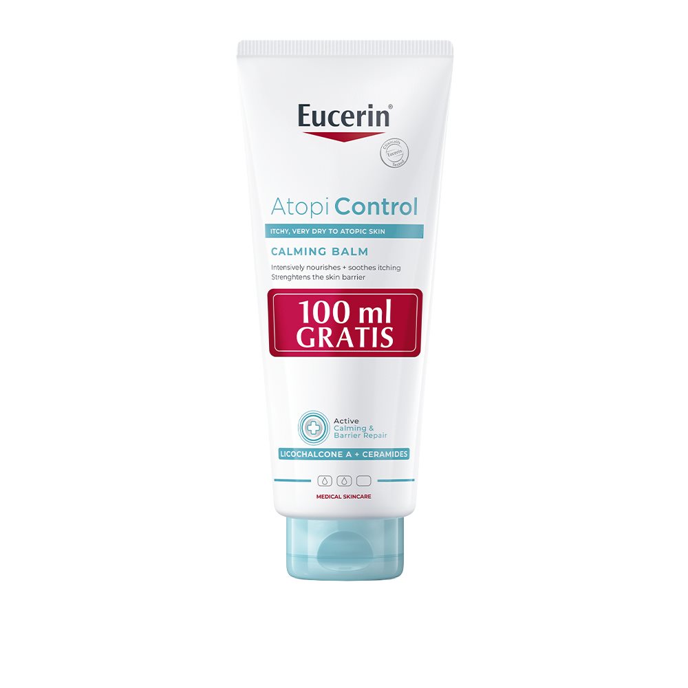 Eucerin AtopiControl balzam za telo je namenjen vsakodnevni uporabi in je bil posebej razvit, da pomiri in intenzivno navlaži razdraženo in srbečo kožo. Lahek in negovalen balzam, ki je po sestavi olje v vodi, je obogaten s pomirjajočim licochalconom A, ceramidi in karitejevim maslom, da okrepi bariero kože, zmanjša suhost in ublaži srbenje. Uporabljati ga je treba tudi med izbruhom, skupaj z Eucerin AtopiControl acute negovalno kremo, Eucerin sprejem proti srbenju in običajnimi zdravili. Balzam za nego pri atopijskem ekcemu zagotavlja takojšnjo navlažitev, da kožo naredi mehko in gladko, z redno uporabo pa opazno izboljša stanje kože.