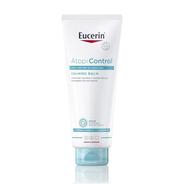 Eucerin AtopiControl balzam za telo je namenjen vsakodnevni uporabi in je bil posebej razvit, da pomiri in intenzivno navlaži razdraženo in srbečo kožo. Lahek in negovalen balzam, ki je po sestavi olje v vodi, je obogaten s pomirjajočim licochalconom A, ceramidi in karitejevim maslom, da okrepi bariero kože, zmanjša suhost in ublaži srbenje. Uporabljati ga je treba tudi med izbruhom, skupaj z Eucerin AtopiControl acute negovalno kremo, Eucerin sprejem proti srbenju in običajnimi zdravili. Balzam za nego pri atopijskem ekcemu zagotavlja takojšnjo navlažitev, da kožo naredi mehko in gladko, z redno uporabo pa opazno izboljša stanje kože.