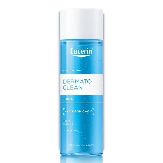 Eucerin® DermatoClean [HYALURON] osvežilni tonik je blag in učinkovit tonik za obraz, ki odstrani vse ostanke čistilnih izdelkov in vode. Formula s hialuronsko kislino ohranja kožo navlaženo in je ne izsuši. Ne vsebuje dišav.