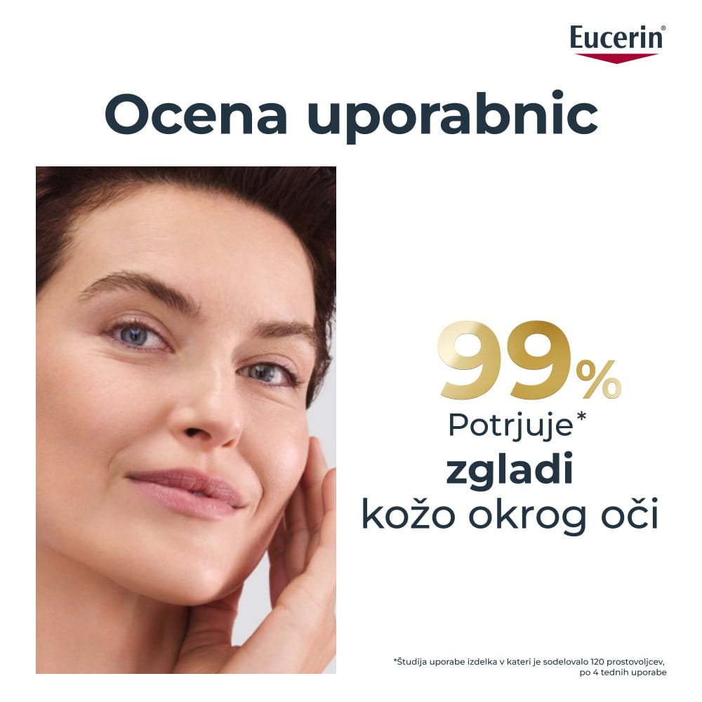 Linija Eucerin Hyaluron-Filler + Elasticity je bila zasnovana posebej za zmanjšanje globokih gub in starostnih peg ter izboljšanje prožnosti in sijaja kože. Eucerinova inovativna mešanica visoko- in nizkomolekularne hialuronske kisline vidno zapolni globoke gube od znotraj, medtem ko kombinacija arctiina in kreatina (kolagensko-elastinski kompleks) poživi tvorbo kolagena in izboljša prožnost kože. Vsebuje tudi Thiamidol, ki klinično potrjeno zmanjša izrazitost starostnih peg, prvi rezultati pa so vidni že po dveh tednih.