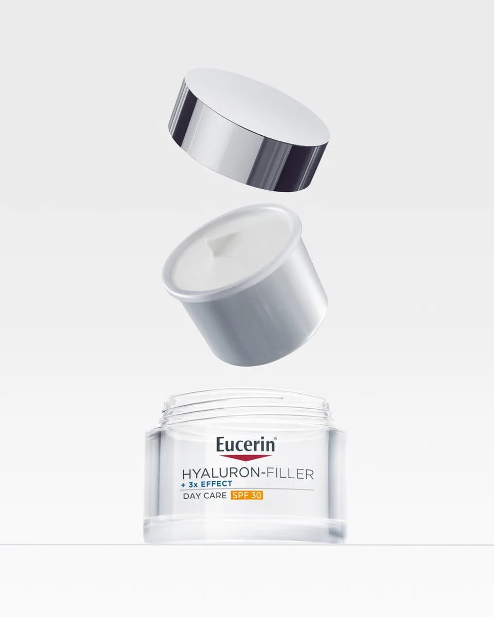 Eucerin Hyaluron-Filler dnevna krema ZF 30 za vse tipe kože deluje proti procesu staranja. Zapolni globlje gube in intenzivno navlaži za čvrstejši videz kože. Z ZF 30 in UVA-filtrom ščiti kožo pred prezgodnjim staranjem, ki ga povzročajo poškodbe kože zaradi sonca.