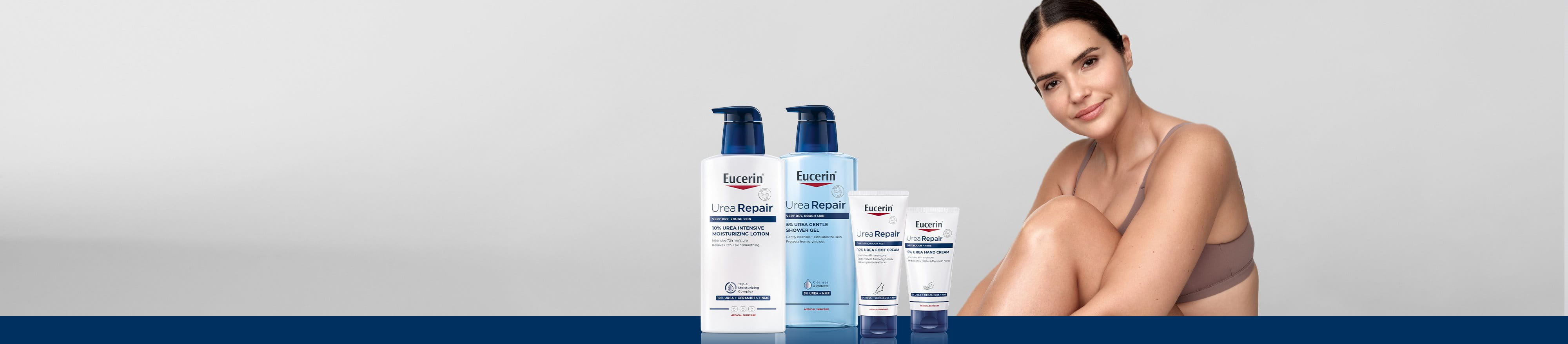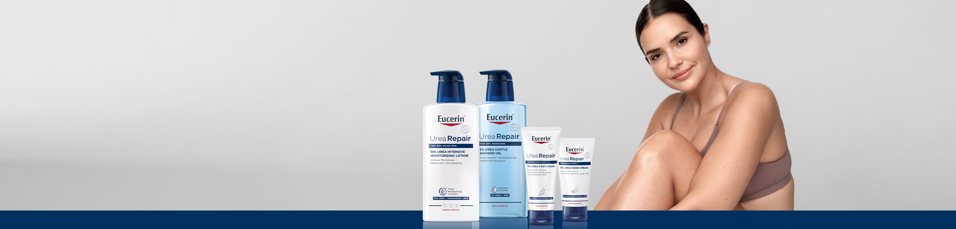 Eucerin UreaRepair nudi celovito linijo izdelkov, ki vključuje izdelek za umivanje, losjone za telo, peno in kreme (tudi negovalne izdelke za roke in noge) in intenzivno kremo za problematična območja zelo suhe kože. Ti izdelki so na voljo z različnimi koncentracijami aktivne uree, ki veže vodo, uporabljena koncentracija pa mora ustrezati resnosti stanja suhe kože. Odišavljena pena za prhanje in losjon za telo 5 % urea s pomirjajočim vonjem ublažita znake suhe kože in pomirita čute, zato sta nadvse primerna za tiste, ki uživajo v prijetnem vonju. Najnovejša dopolnitev linije, pena za noge, pomaga intenzivno navlažiti kožo in je na voljo v izjemno lahki, nemastni in nelepljivi teksturi, ki se zlahka nanese na kožo.