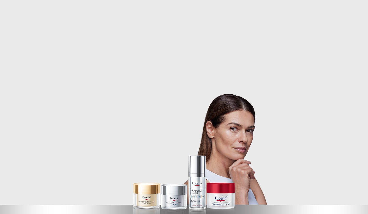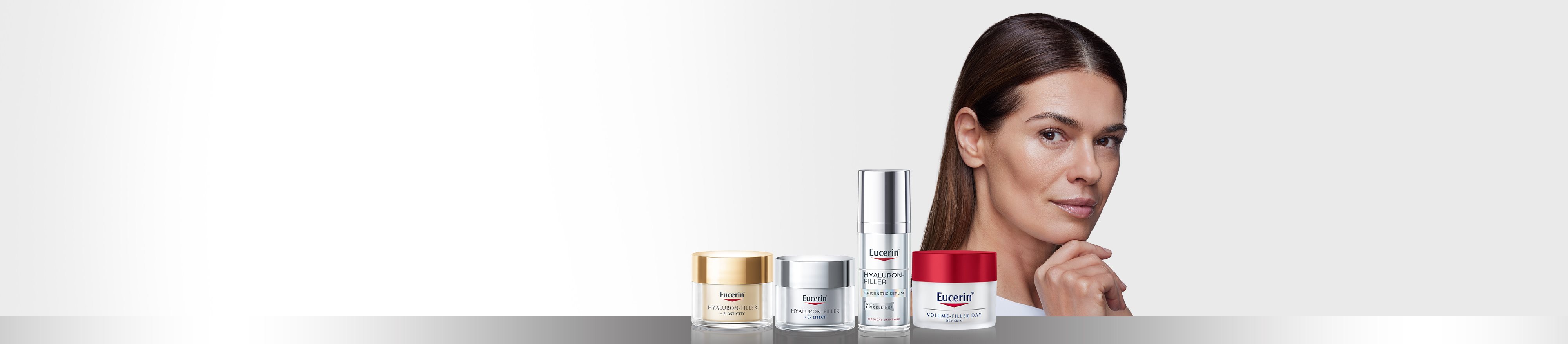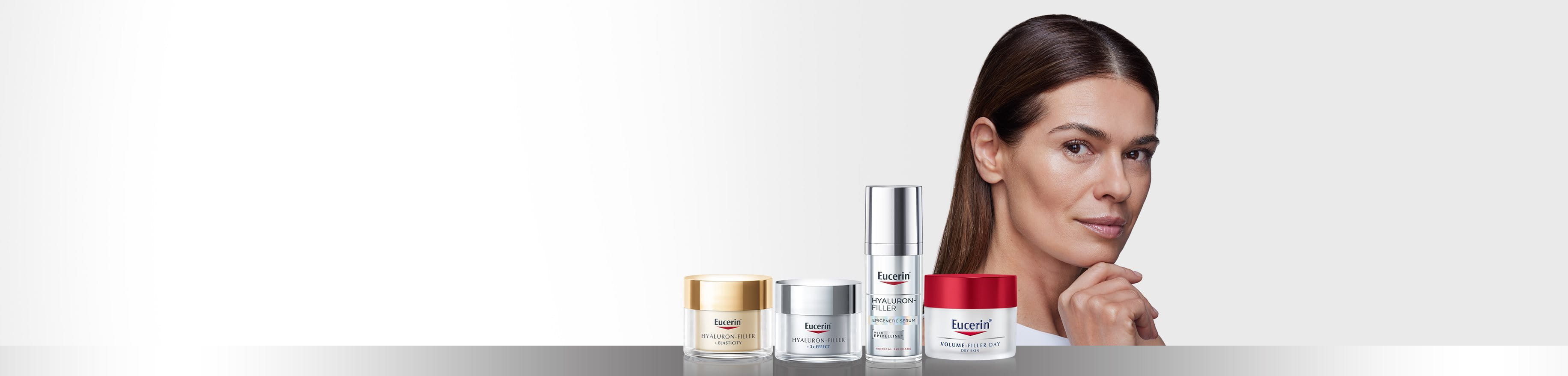 - Eucerin Hyaluron-Filler s formulo, ki nudi tri učinke, deluje proti procesu staranja. Zapolni gube ter stimulira in ščiti ravni hialurona v koži. Za vidno mladostnejšo, bolj gladko in sijočo kožo.