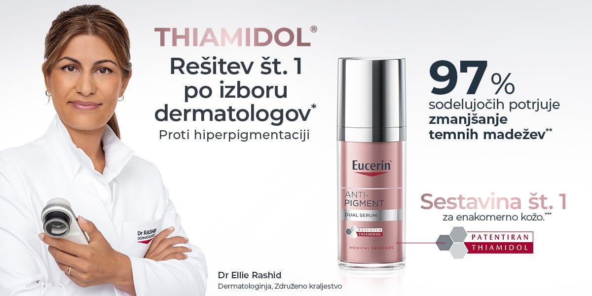 Linija Anti-Pigment vsebuje inovativni patentirani Thiamidol, ki je učinkovina št. 1 proti temnim madežem**. Deluje na vse vrste temnih madežev, nastalih zaradi izpostavljenosti soncu, hormonskih vplivov, aken in staranja. Thiamidol deluje na molekularni ravni in že od prvega dne uporabe zavira nastajanje melanina, kar povzroči bledenje pigmentnih madežev in prepreči nastanek novih.