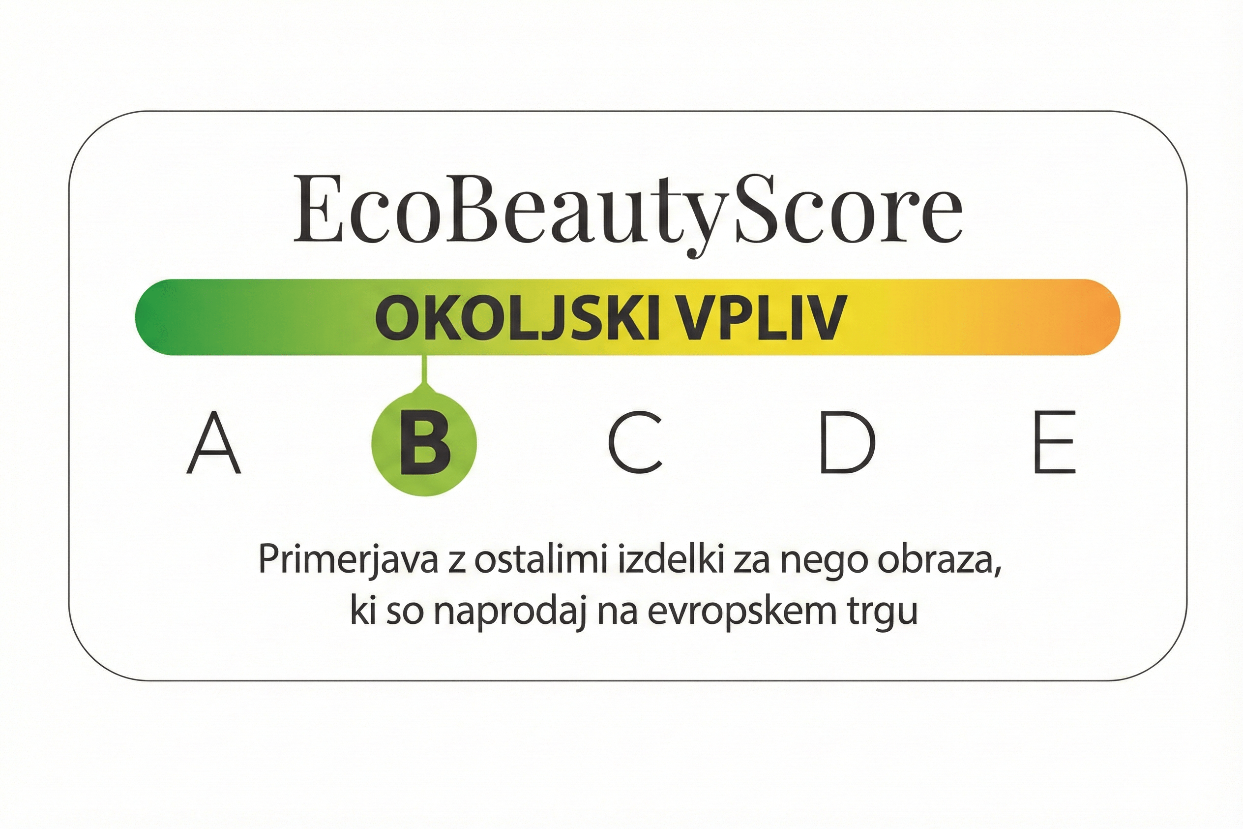 Kot član zveze EcoBeautyScore smo zavezani izboljšanju transparentnosti glede vpliva kozmetičnih izdelkov na okolje. Ta globalna pobuda, ki vključuje kozmetična podjetja in strokovnjake po vsem svetu, je razvila oceno vpliva na okolje in neodvisno potrjen sistem ocenjevanja, ki temelji na znanosti. Te ocene vam pomagajo bolje razumeti vpliv naših negovalnih izdelkov na okolje, kar vam omogoča bolj informirane odločitve.